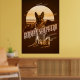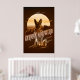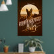 Striking retro-style poster design of a German Shepherd with a background of mountains and large sun graphic all in monochrome shades of gold through brown. A large decorative font names the dog breed. Search ID754 to see other color options and additional dog breeds in this style.