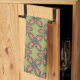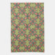 Retro Green and Orange Abstract Floral Pattern Kitchen Towel