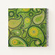 Lovely and cheery green and yellow paisley design.  A single gold circle in the centre gets personalized with your initials. Unique!