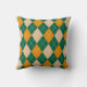 Retro Green Beige Mustard Argyle Diamond Pattern Throw Pillow