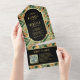 Retro Green Gold Marble Art Deco QR Code Wedding All In One Invitation