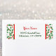 Editable return address labels with red letters for your name, and dark green letters on a retro holiday pattern of green holly with red berries.