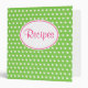 Lime green and white dots give this recipe binder retro style. Use this empty binder as a recipe binder, recipe book, cookbook, recipe organizer, folder, organizer, gift, etc...The designs are from original art.