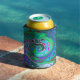 Retro Green, Red and Magenta Abstract Groovy Swirl Can Cooler
