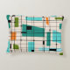 This Retro Grid and Starbursts Accent Pillow is where vintage style meets modern day. It features a cream coloured background with kitschy, off kilter squares and rectangles in teal, turquoise, This light blue, orange, and avocado green. The whimsical blocks of colour are overlayed are worked into some of the grid intersections. There are also black rectangles with black vertical and horizontal lines forming a grid pattern. Black starburst designs and squares placed sporadically throughout this mid century modern tapestry of colour. Grab your go-go boots and bell-bottoms and enjoy this throwback to the 1960s.