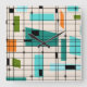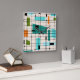 This Retro Grid and Starbursts Acrylic Wall Clock is where vintage style meets modern day. It features a cream coloured background with kitschy, off kilter squares and rectangles in teal, turquoise, This light blue, orange, and avocado green. The whimsical blocks of colour are overlayed are worked into some of the grid intersections. There are also black rectangles with black vertical and horizontal lines forming a grid pattern. Black starburst designs and squares placed sporadically throughout this mid century modern tapestry of colour. Grab your go-go boots and bell-bottoms and enjoy this throwback to the 1960s.