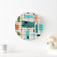 This Retro Grid and Starbursts Acrylic Wall Clock is where vintage style meets modern day. It features a cream coloured background with kitschy, off kilter squares and rectangles in teal, turquoise, This light blue, orange, and avocado green. The whimsical blocks of colour are overlayed are worked into some of the grid intersections. There are also black rectangles with black vertical and horizontal lines forming a grid pattern. Black starburst designs and squares placed sporadically throughout this mid century modern tapestry of colour. Grab your go-go boots and bell-bottoms and enjoy this throwback to the 1960s.