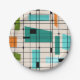 This Retro Grid and Starbursts Paper Plate is where vintage style meets modern day. It features a cream coloured background with kitschy, off kilter squares and rectangles in teal, turquoise, This light blue, orange, and avocado green. The whimsical blocks of colour are overlayed are worked into some of the grid intersections. There are also black rectangles with black vertical and horizontal lines forming a grid pattern. Black starburst designs and squares placed sporadically throughout this mid century modern tapestry of colour. Grab your go-go boots and bell-bottoms and enjoy this throwback to the 1960s. This is a fun design for any party.