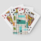 These Retro Grid and Starbursts Playing Cards are where vintage style meets modern day. It features a cream coloured background with kitschy, off kilter squares and rectangles in teal, turquoise, This light blue, orange, and avocado green. The whimsical blocks of colour are overlayed are worked into some of the grid intersections. There are also black rectangles with black vertical and horizontal lines forming a grid pattern. Black starburst designs and squares placed sporadically throughout this mid century modern tapestry of colour. Grab your go-go boots and bell-bottoms and enjoy this throwback to the 1960s.