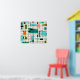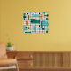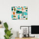 This Retro Grid and Starbursts Poster is where vintage style meets modern day. It features a cream coloured background with kitschy, off kilter squares and rectangles in teal, turquoise, This light blue, orange, and avocado green. The whimsical blocks of colour are overlayed are worked into some of the grid intersections. There are also black rectangles with black vertical and horizontal lines forming a grid pattern. Black starburst designs and squares placed sporadically throughout this mid century modern tapestry of colour. Grab your go-go boots and bell-bottoms and enjoy this throwback to the 1960s.