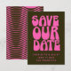 Retro Groovy 70s Hot Pink and Dark Green Save the Date