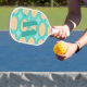 Retro Groovy Aqua & Peach Monogram Pickleball Paddle