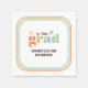 This graduation party paper napkin offers a retro 70s theme featuring boho colours. This paper plate makes a great personalized addition to your party decor.