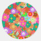 Retro Groovy Boho Hippie Flowers Classic Round Sticker