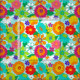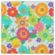 Bold retro floral patterned fabric printed with colourful groovy hippie flowers