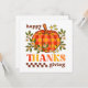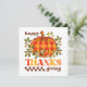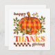 Retro groovy style colourful greeting card. Elegant retro font typography "Happy Thanksgiving", with cute daisy flowers, stars and a chequered pumpkin. The card includes a wonderful greeting message at the back which can be personalized.
