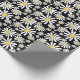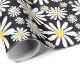 Retro Groovy Daisies Spring Pattern Black Wrapping Paper