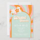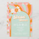 Groovy Daisy Bridal Shower Invitation with daisies and arch accent in mint, pink and orange colours.