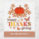 Elegant retro font typography "Happy Thanksgiving", with cute daisy flowers, butterflies, and a pumpkin. The name can be customized.