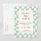 Retro Groovy Green Chequerboard Wedding Announcement Postcard