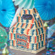 A retro groovy Christmas favour box featuring geometric Christmas trees.