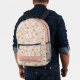 This trendy and groovy girl's backpack features a white background with retro floral patterns in light pink and white. Personalize it for your needs. You can find matching products at my store.
