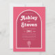 Retro groovy magenta and pink 70s inspired wedding invitation
