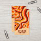 A Vintage retro Psychedelic colourful liquid business card. That features a handmade groovy pattern boho abstract wavy shapes lines .In elegant chic orange and brown and beige . Modern yet it has nostalgic seventies vibes and colours and groovy fonts. With customizable name and profession and QR code.