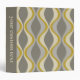 A mod patterned gold binder with a place for text on the spine. The taupe, grey and gold design has a groovy organic wave pattern. A minimal look in subtle colours with a simple serif font for text.