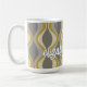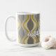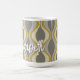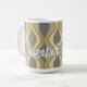 A mod patterned gold organic wave with a place for a simple monogram. The taupe, grey and gold design has a groovy organic wave pattern. A minimal look in subtle colours with a simple serif font for a monogram.