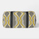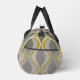 A mod patterned gold bag with a place for a simple monogram. The taupe, grey and gold design has a groovy organic wave pattern. A minimal look in subtle colours with a simple serif font for a monogram.