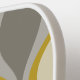 A mod patterned gold paddle with a place for a simple monogram. The taupe, grey and gold design has a groovy organic wave pattern. A minimal look in subtle colours with a simple serif font for a monogram.