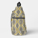 A mod patterned gold bag with a place for a simple monogram. The taupe, grey and gold design has a groovy organic wave pattern. A minimal look in subtle colours with a simple serif font for a monogram.