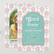 This invitation is inspired by the funky vibes of the 70s, with a delightful combination of pink and aqua colours. The centerpiece of the invitation is an aqua arch that beautifully frames your personalized text. Behind the arch, a charming pattern of retro flowers in pink and aqua blue adds a playful and stylish element. The text "Grad party" is prominently displayed in a bold retro font, adding a touch of personality. On the back of the invitation, you' will find a photo of the graduate within the arch, creating a sentimental and memorable keepsake. The same floral pattern continues on the back, tying the whole design together. Get ready to groove and celebrate this special milestone in style!