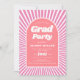 Retro groovy pink sunrays 70s inspired Graduation Invitation