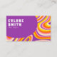 A Vintage retro Psychedelic colourful liquid business card. That features a handmade groovy pattern boho abstract wavy shapes lines .In elegant chic purple and pink and yellow and orange . Modern yet it has nostalgic seventies vibes and colours and groovy fonts. With customizable name and profession and QR code.