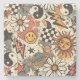 Retro Groovy Smiley Sun Daisy Psychedelic Pattern Stone Coaster
