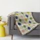 Retro Groovy Summer Flowers Stems Throw Blanket