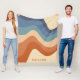 Get cozy with a warm throw in a colourful retro groovy pattern of wavy bands of muted colours. The colours include a mix of warm and cool colours - shades of blue, terra cotta and beige blend beautifully to compliment many decor styles. A fun text template with "Cozy is a Vibe" text can be personalized with any text you desire or ordered as written.
