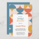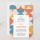 The invitation shows a combination of half circles and ogee scallops, elegantly displayed in shades of orange, yellow, and blue,