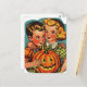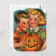 Retro Halloween Boy and Girl with Jack-o-Lantern Postcard
