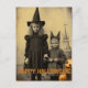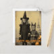 Retro Halloween creepy kids with carved pumpkins Postcard