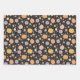 Retro Halloween Pumpkins and Flowers Pattern Wrapping Paper Sheet
