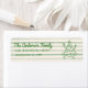 As you see the design features a unique green hand made and drawn funny Christmas tree. With red hand written typography of your family . And your handwritten green return address. That is easily customizable. On green pinstripes background.