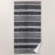 This warm and cosy black and white stripy beach towel has a very traditional fun hand knitted appearance, the knitted stripe image on the blanket is taken from a photograph of an original hand knitted pattern. The original black and white knitted beach towel has been photographed to show it looking natural and "pre loved" you may even see a few pet hairs! and there will be bobbly bits, stray threads and creases, this all makes up the natural look of a much loved fun traditional knitted striped towel. The natural look of the image on this towel gives it a comfortable and warm feeling.