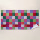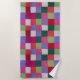 This warm and cozy patchwork beach towel has a very traditional hand knitted appearance, the knitted squares print on the blanket is taken from a photograph of an original hand knitted pattern. The original multi colored knitted towel has been photographed to show it looking natural and "pre loved" you may even see a few pet hairs! and there will be bobbly bits, stray threads and creases, this all makes up the natural look of a much loved traditional fun knitted patchwork towel. The natural look of the image on this towel gives it a comfortable and warm feeling.