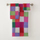 retro hand knitted colourful patchwork squares fun bath towel set