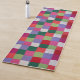 This unusual yoga mat has a very traditional hand knitted appearance, the knitted squares print on the mat is taken from a photograph of an original hand knitted pattern. The original multi coloured knitted blanket has been photographed to show it looking natural and "pre loved" you may even see a few pet hairs! the squres may be a little uneven and there will be bobbly bits, stray threads and creases, this all makes up the natural look of a much loved traditional knitted vintage style yoga mat. There's a shower curtain and othe products to match the mat .