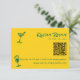 A unique and elegant calligraphy colourful retro wedding rsvp card. As you see it has a vintage modern yellow background with green hand written script and green hand drawn painted champagne and cocktail glass. And customizable QR code so your invites could RSVP online easily. You can edit it by clicking on the personalize button.