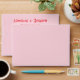A retro modern hand written bright colourful wedding envelope. Which features bold bride and groom's names in vivid red colour. And personalized return address . On simple blush pink vintage colour background. Which suits the whole wedding suite.